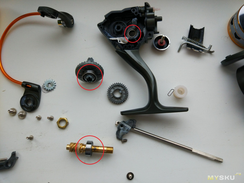 Мы написали очень полезную статью, в которой подробно описали процесс разборки, чистки, смазки и сборки катушки. В статье вы узнаете про внутреннее строение катушек, виды смазок и другие ценные советы. Читайте про это по ссылке тут — разборка и смазка катушек .