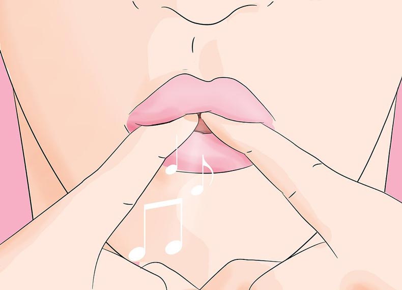 Это сложная техника, и вы, вероятно, не получите свистка с первой попытки. Слегка меняйте положение пальцев и языка, пока не найдете свисток для двух пальцев, который подходит именно вам.