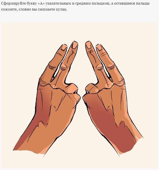 1: Сформируйте A-образную фигуру указательным и средним пальцами обеих рук;