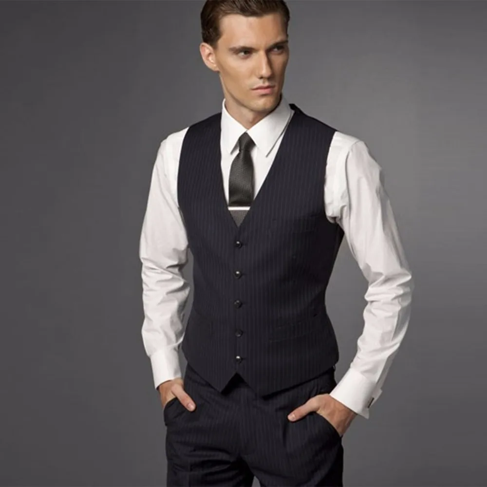 По этикету в общественных местах можно снять пиджак, когда на вас надет жилет, классическим является однобортная модель на шести пуговицах и с тремя кармашками. На жилеты, как и на пиджаки, распространяется правило — нижнюю пуговицу следует держать не застегнутой.